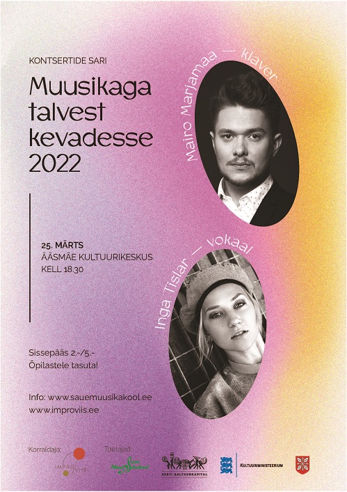 1. veebruaril kell 18.30 ja 5. veebruaril kell 16 toome Saue Kontserdisaalis, Riisipere Kultuurimajas kuulajateni noorte andekate interpreetide duo Karl Tipp (saksofon), Lea Valiulina (klaver) kontsertkava „Värvilised maastikud“. Muusikud viivad kuulajaid helirännakule sügisest suvesse. Muusika vahele loeb oma loomingut luuletaja Doris Kareva.